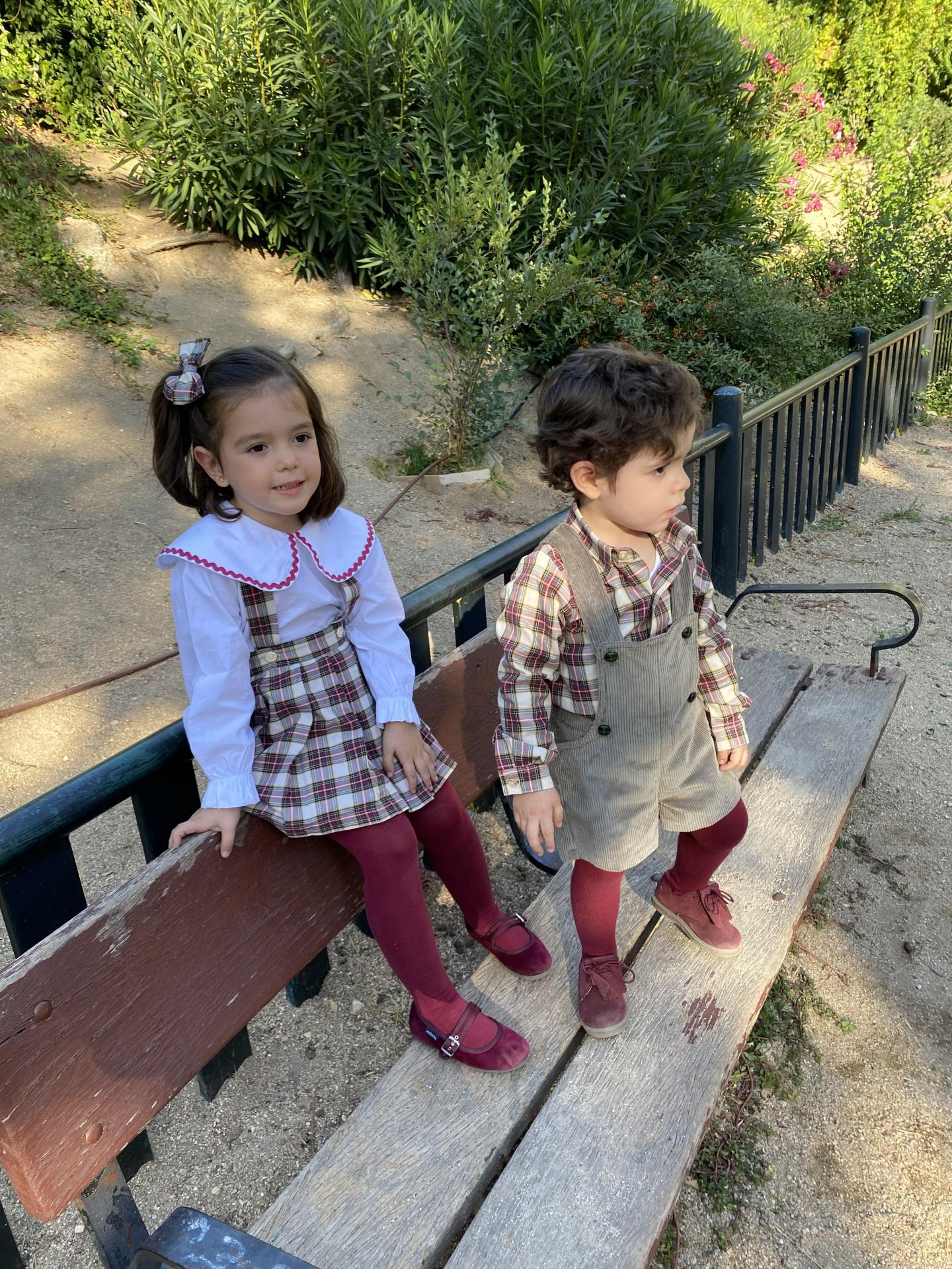 Camisa confeccionada en algodón 100%. Tejido estampado en tonos beige y burdeos, pertenece a nuestra colección tartán pensada para los pequeños de la familia.