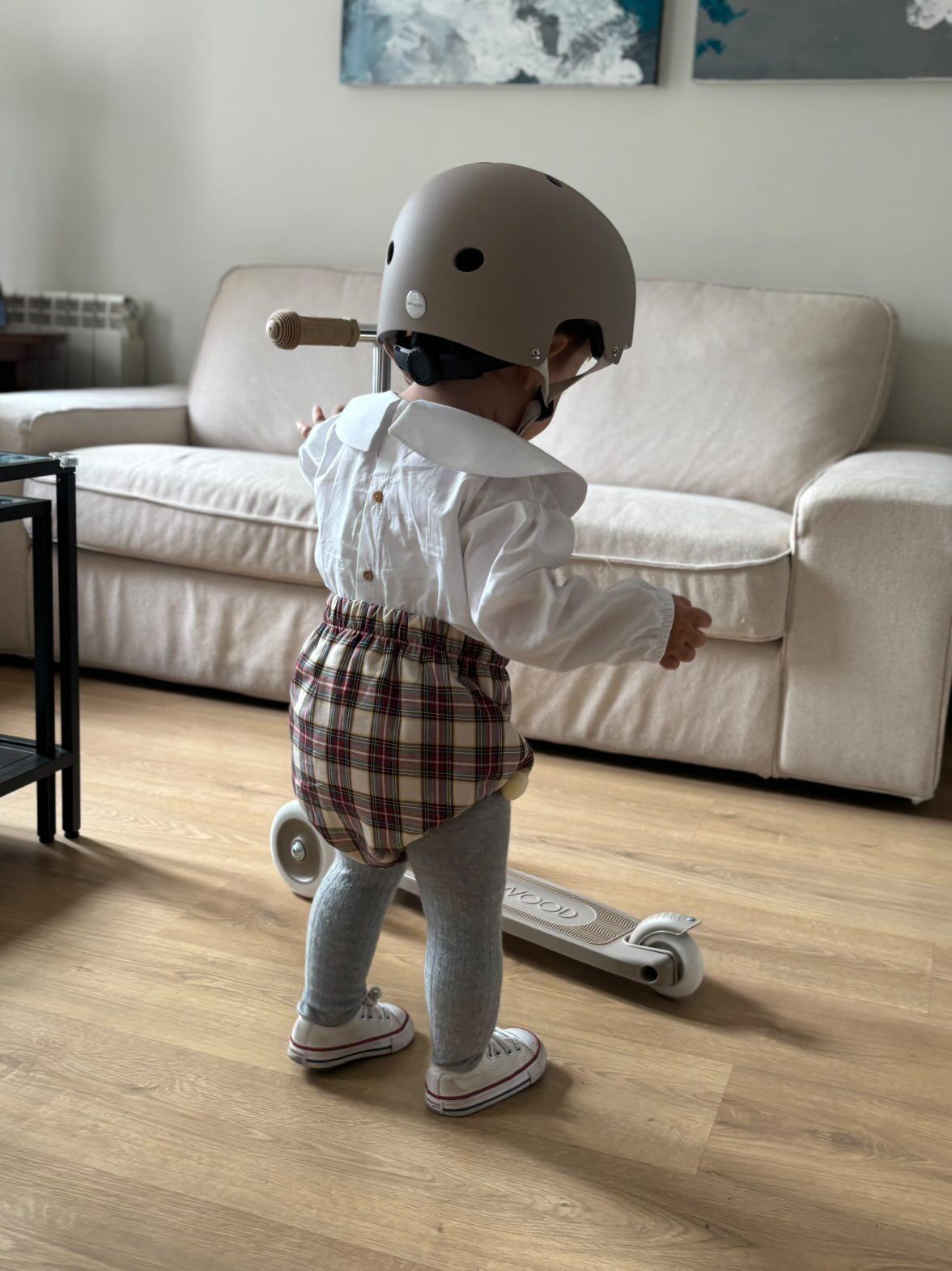 La prenda más versátil y práctica a la hora de vestir a los pequeños de la casa. Nuestro cubre pañal confeccionado en algodón 100 % cuenta con un tejido estampado en cuadros tartán en todos beige y burdeos.